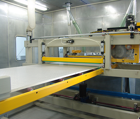 擁有國內(nèi)從歐洲全套引進(jìn)的柔性面材夾芯板連續(xù)生產(chǎn)線兩條。
